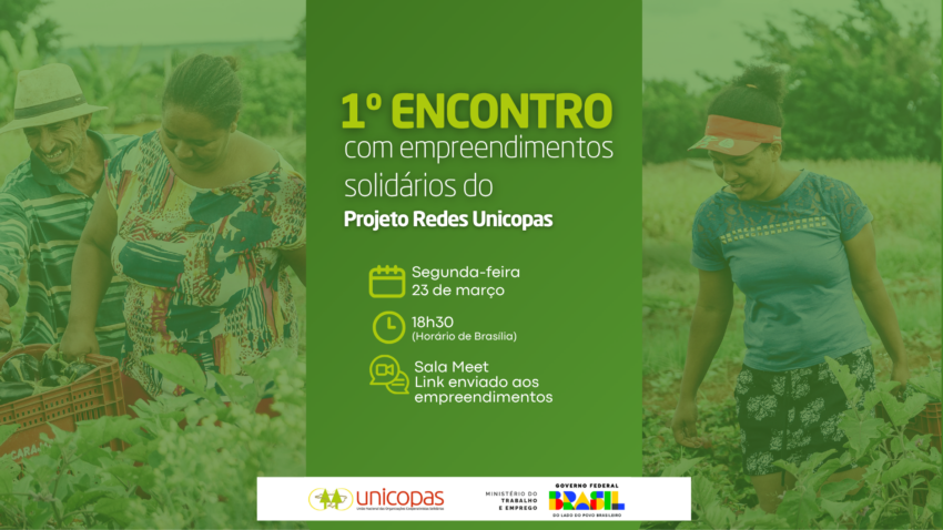 A Unicopas (União Nacional das Organizações Cooperativistas Solidárias), realiza nesta segunda-feira (23), a partir das 18h30, o 1º Encontro com os 60 empreendimentos econômicos solidários que integram o Projeto Redes Unicopas.