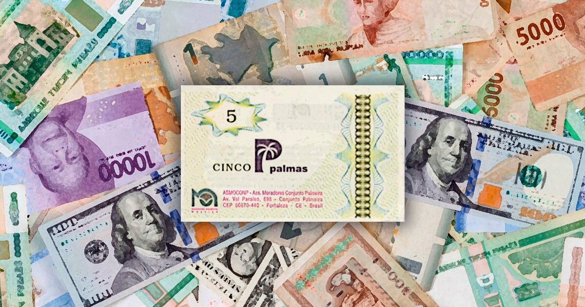 A primeira instituição bancária comunitária no Brasil é o Banco Palmas, e a primeira moeda social é a Palmas, criados em 1998 para atender o conjunto Palmeiras, localizado na periferia de Fortaleza, no Ceará.