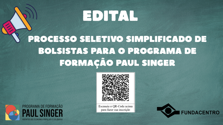 Fundacentro e a Secretaria Nacional de Economia Popular e Solidária – Senaes lançam o Edital nº 03/2025 para o Processo Seletivo Simplificado que oferece 20 (vinte) bolsas para atuação no âmbito do Programa de Formação Paul Singer – Agentes de Economia Popular e Solidária. A iniciativa integra o Programa de Bolsas da Fundacentro (PBFunda), dentro do projeto matriz Trabalho Justo, Digno, Solidário, Saudável e Seguro.