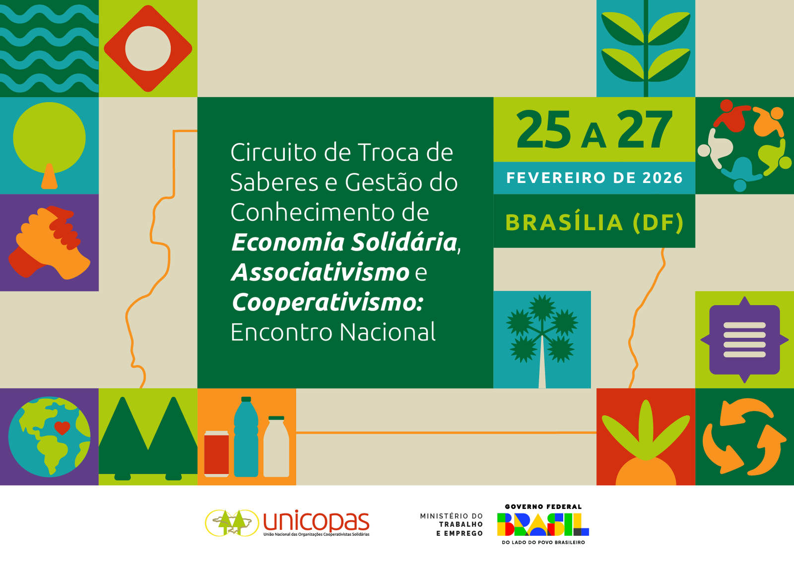 A União Nacional das Organizações Cooperativistas Solidárias (Unicopas) realiza, entre os dias 25 e 27 de fevereiro, o Circuito de Trocas de Saberes e Gestão do Conhecimento em Economia Solidária, Associativismo e Cooperativismo, em Brasília (DF). O evento ocorre na sede da Confederação Nacional dos Trabalhadores Rurais Agricultores e Agricultoras Familiares (Contag), e tem entre os objetivos consolidar o Planejamento Trienal 2026-2028 da Unicopas.
